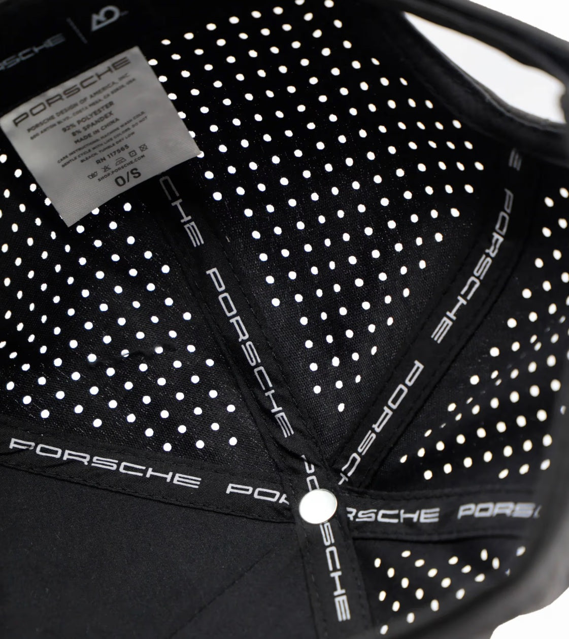 - Perforated performance fabric.